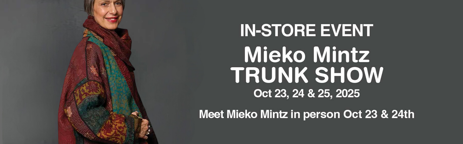 Established in 1986, MIO has continued to present the very best of independent clothing and accessory designers from Europe, Asia and the USA. Our goal is to dress the well traveled woman who seeks quality in fabric and simplicity in design to create an individual style that will withstand time and trends. Whether you are looking for a new wardrobe or a few key seasonal pieces, we look forward to giving each customer a unique and personalized shopping experience.
