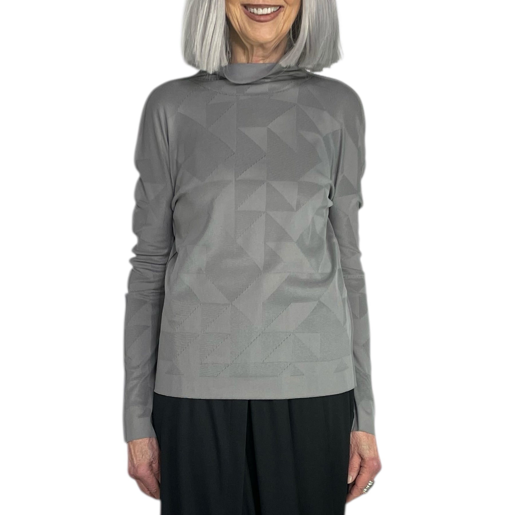 Long sleeve knit top with a high neck.