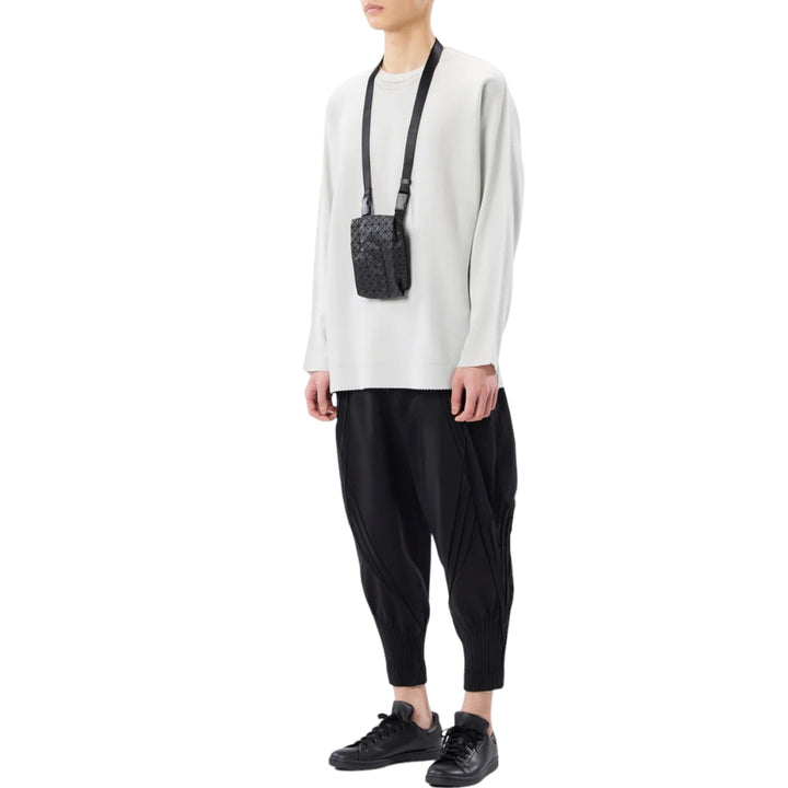 Compact size yet highly functional crossbody bag with adjustable shoulder strap and zip around closure.  Interior sections include a coin case, 3-card holder, removable key chain, and a gusseted section for larger items. Strap is fully removable, bag can be attached to any other bag or garment by re-attaching the snap buckles.