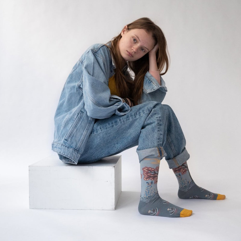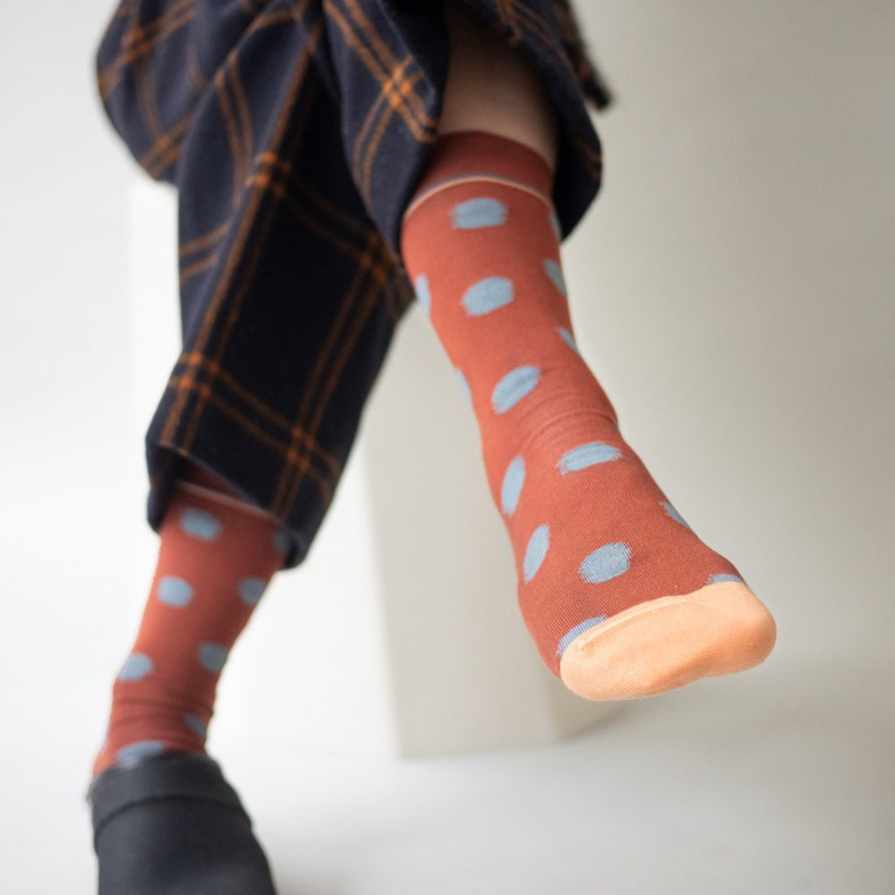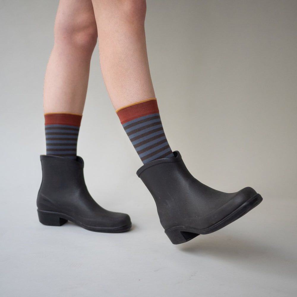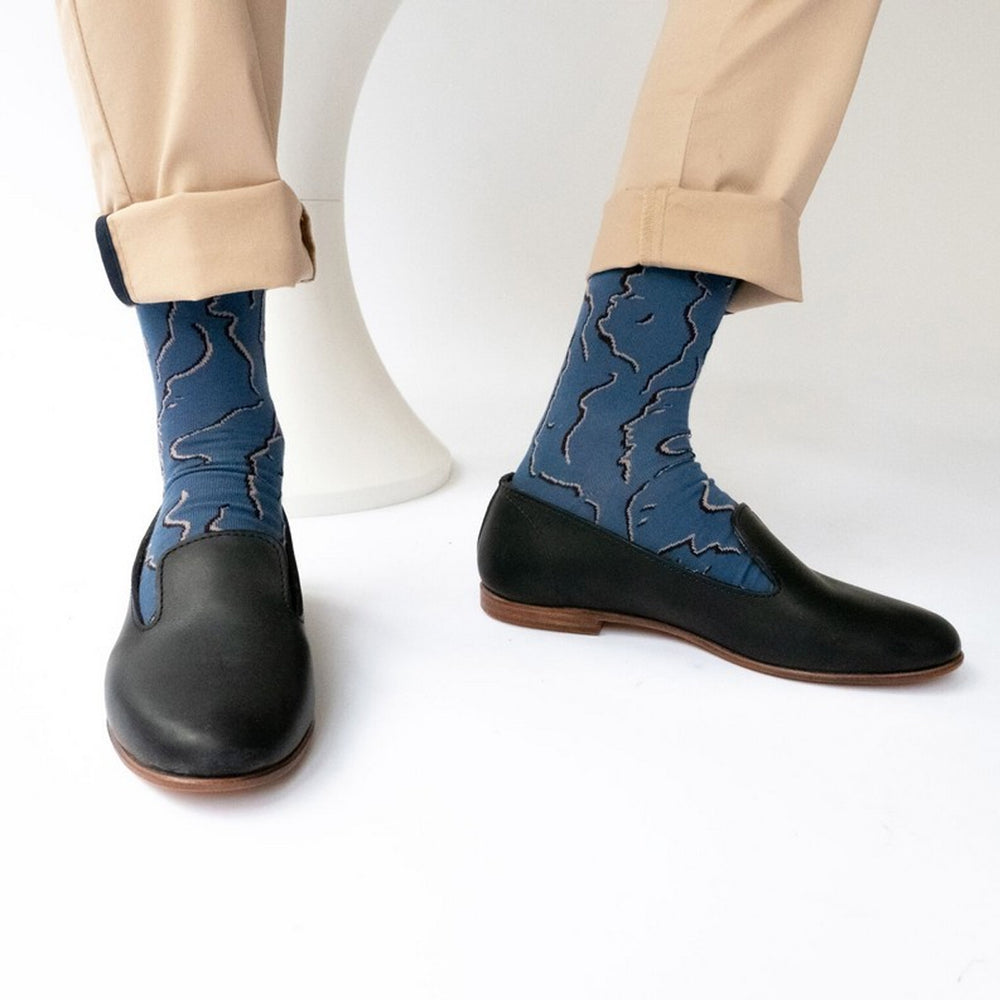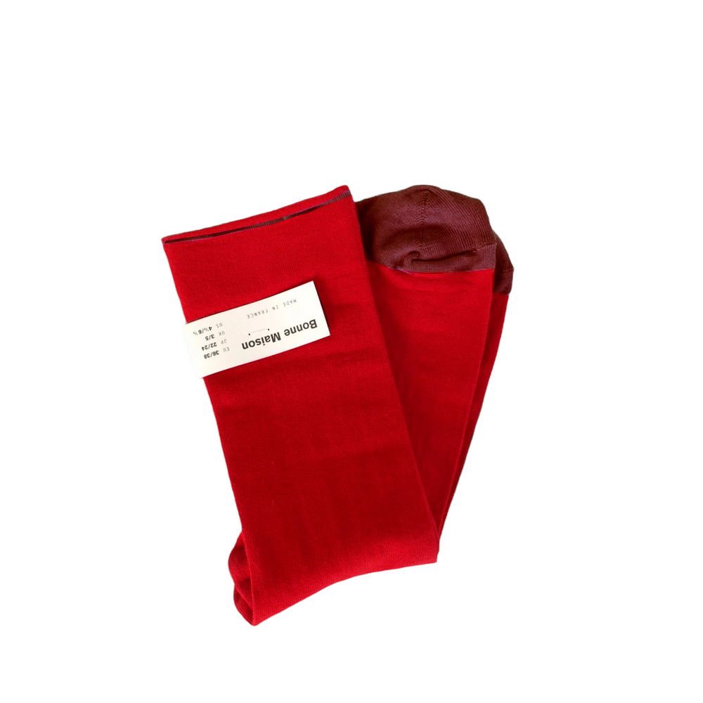 The French brand Bonne Maison creates a high quality sock, really thin, with a stitchless strengthened toe. Using high quality Egyptian cotton and an elastane double thread, they are spun with a special technique, eliminating all of the short fibers, resulting in the prevention of pilling once knitted, making it smooth, soft, matte and strong. The delicacy of the stitch ensures a great precision in the patterns. The dyeing of the threads are specially made in Italy.