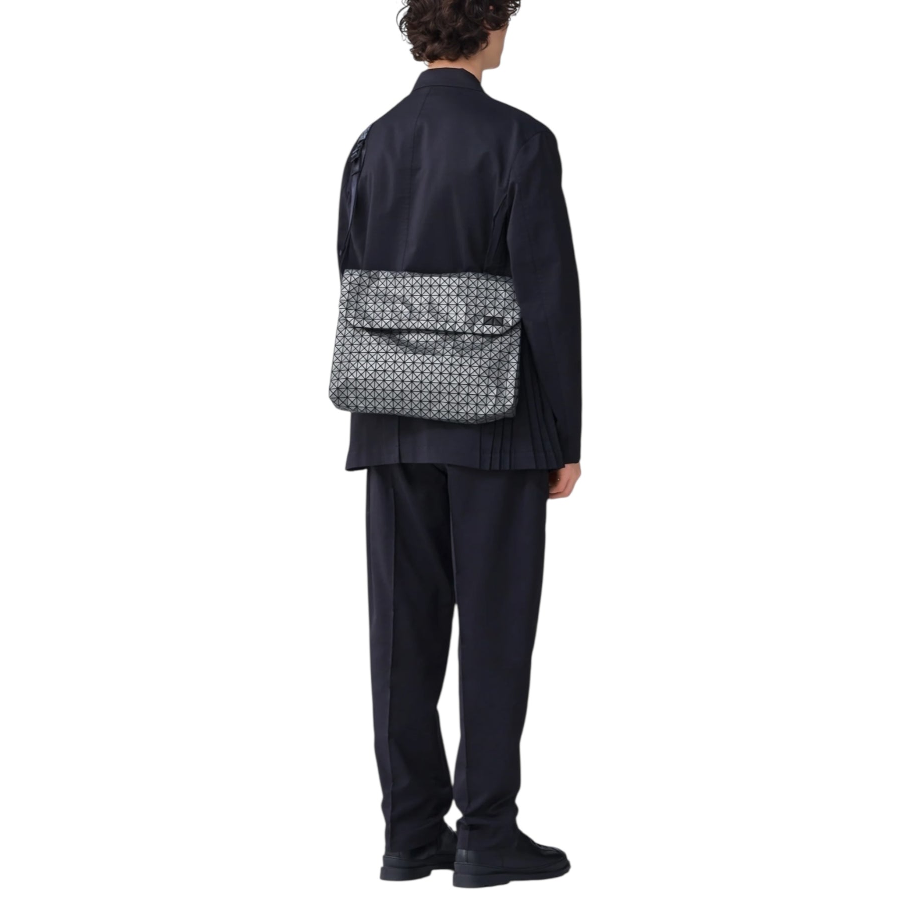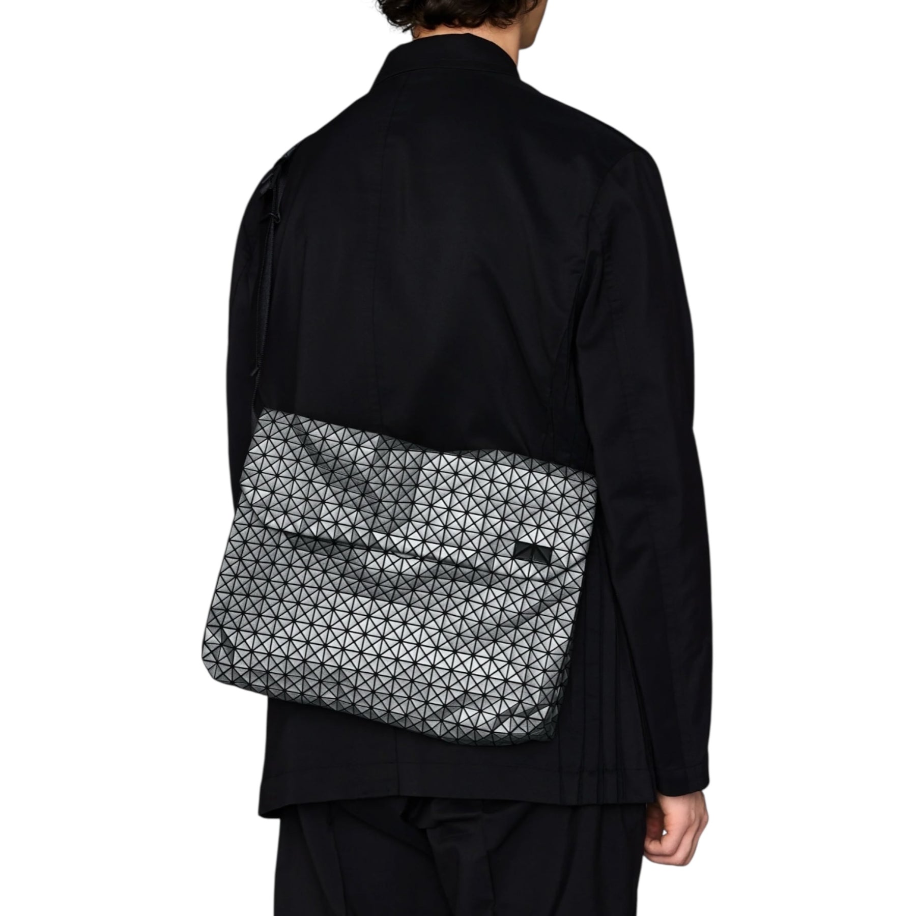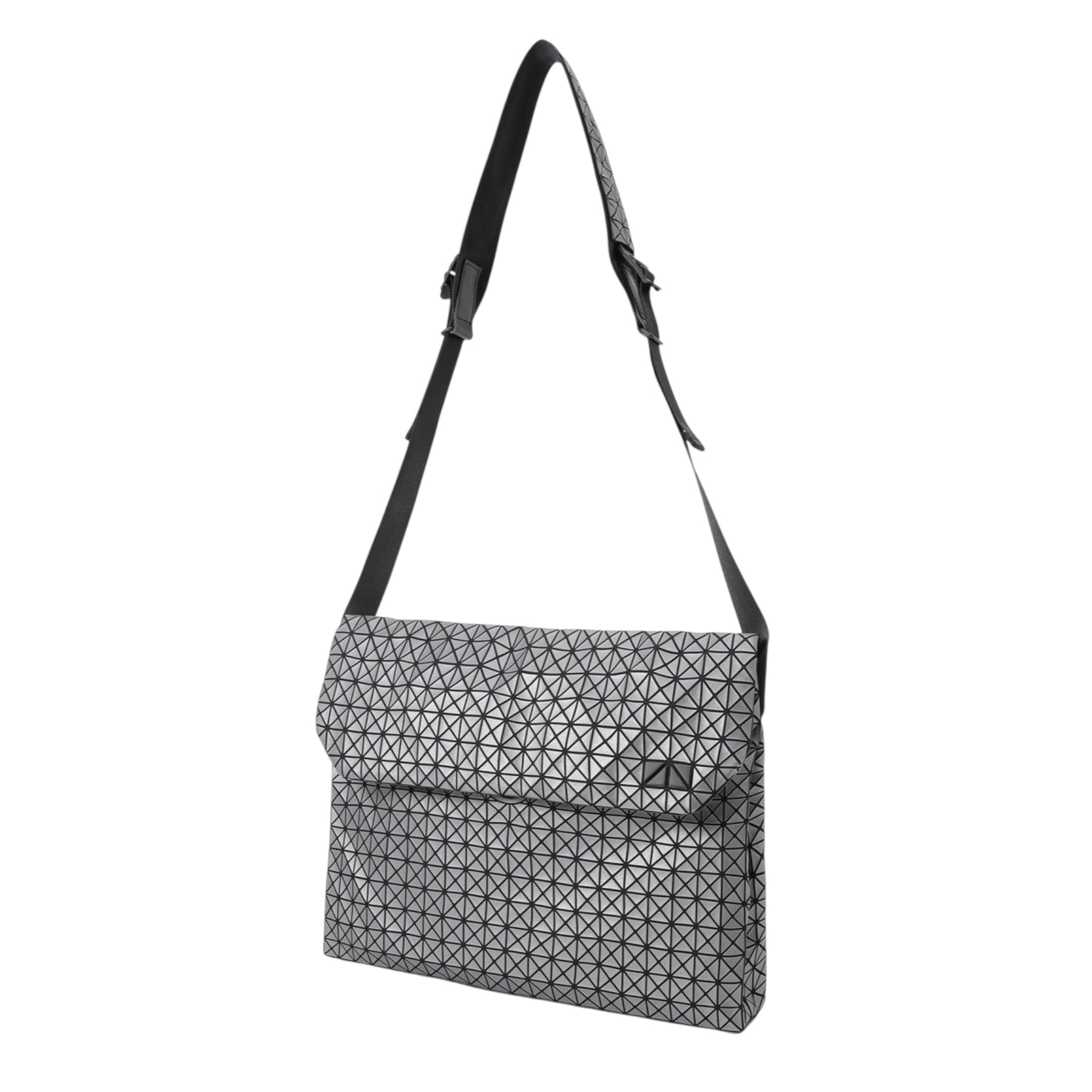 KURO series shoulder bag is characterized by its fine, supple pieces.  This version uses reflective material for the triangular pieces. When light hits the bag in the dark, its entire three-dimensional surface reflects the light.  The metallic look of the material is apparent in bright places.