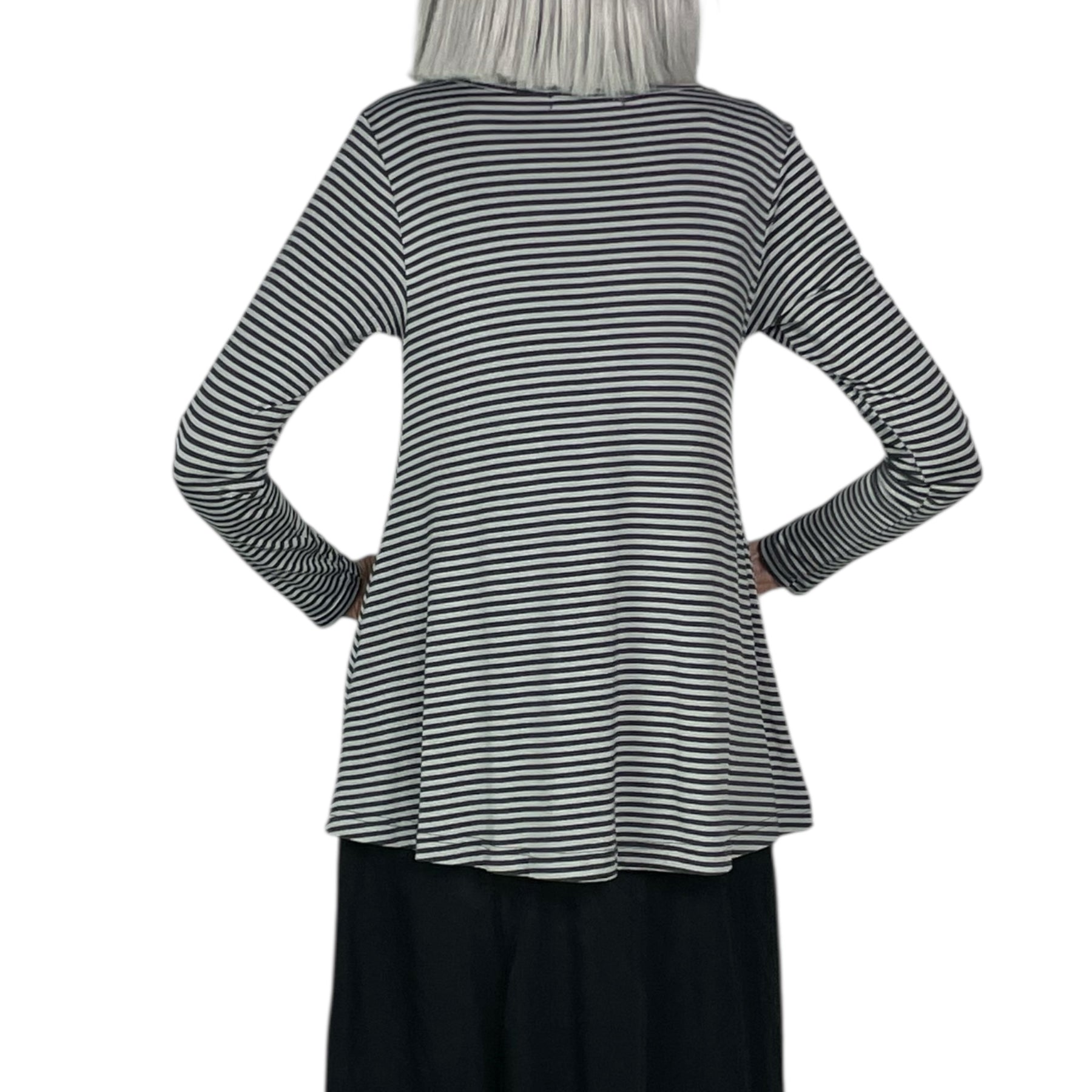 Long sleeve round neck T-shirt with an A-line silhouette.