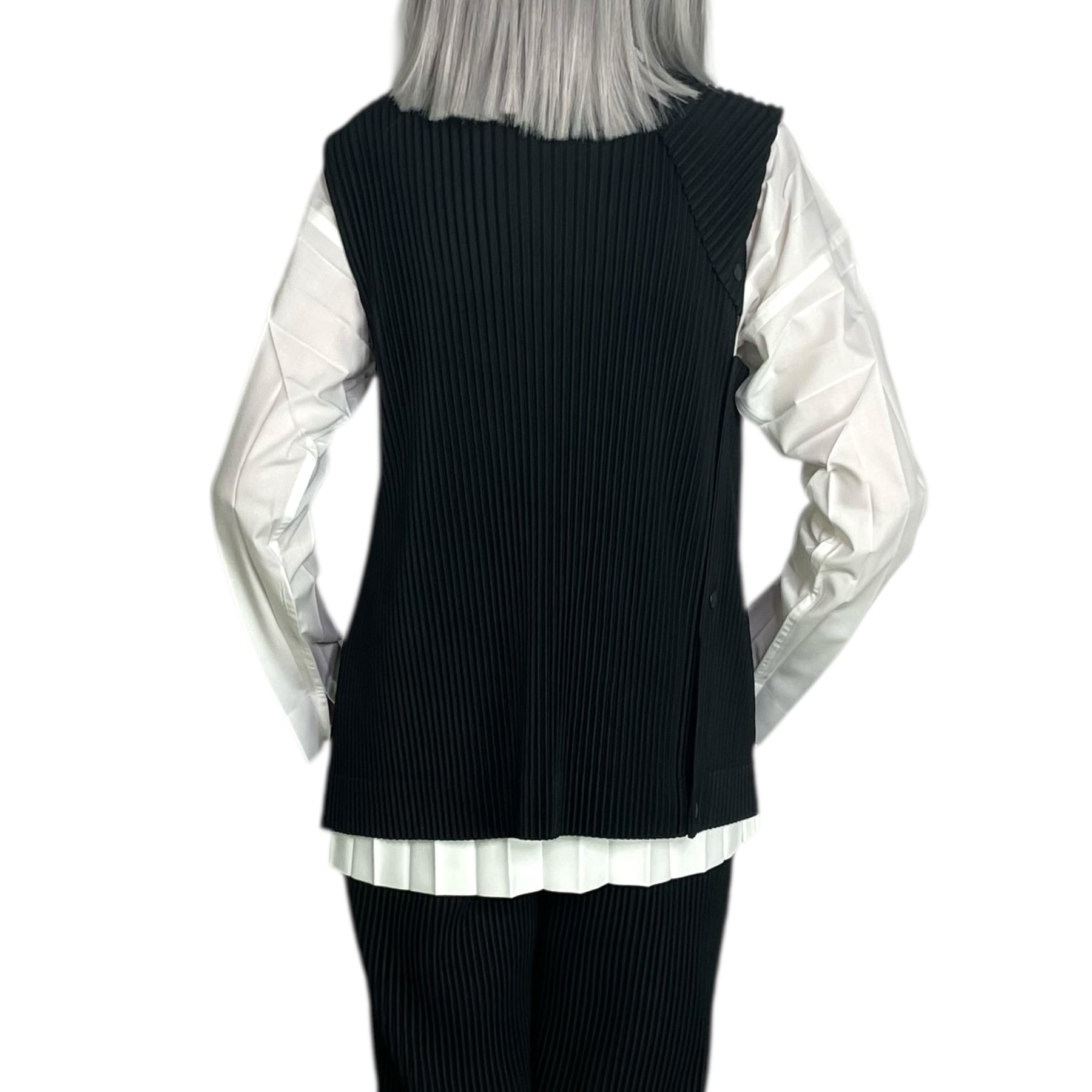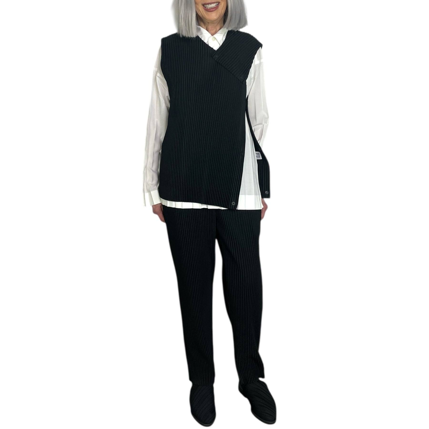 Styled with Homme Plissé Edge Shirt and Basics Straight Leg Trouser