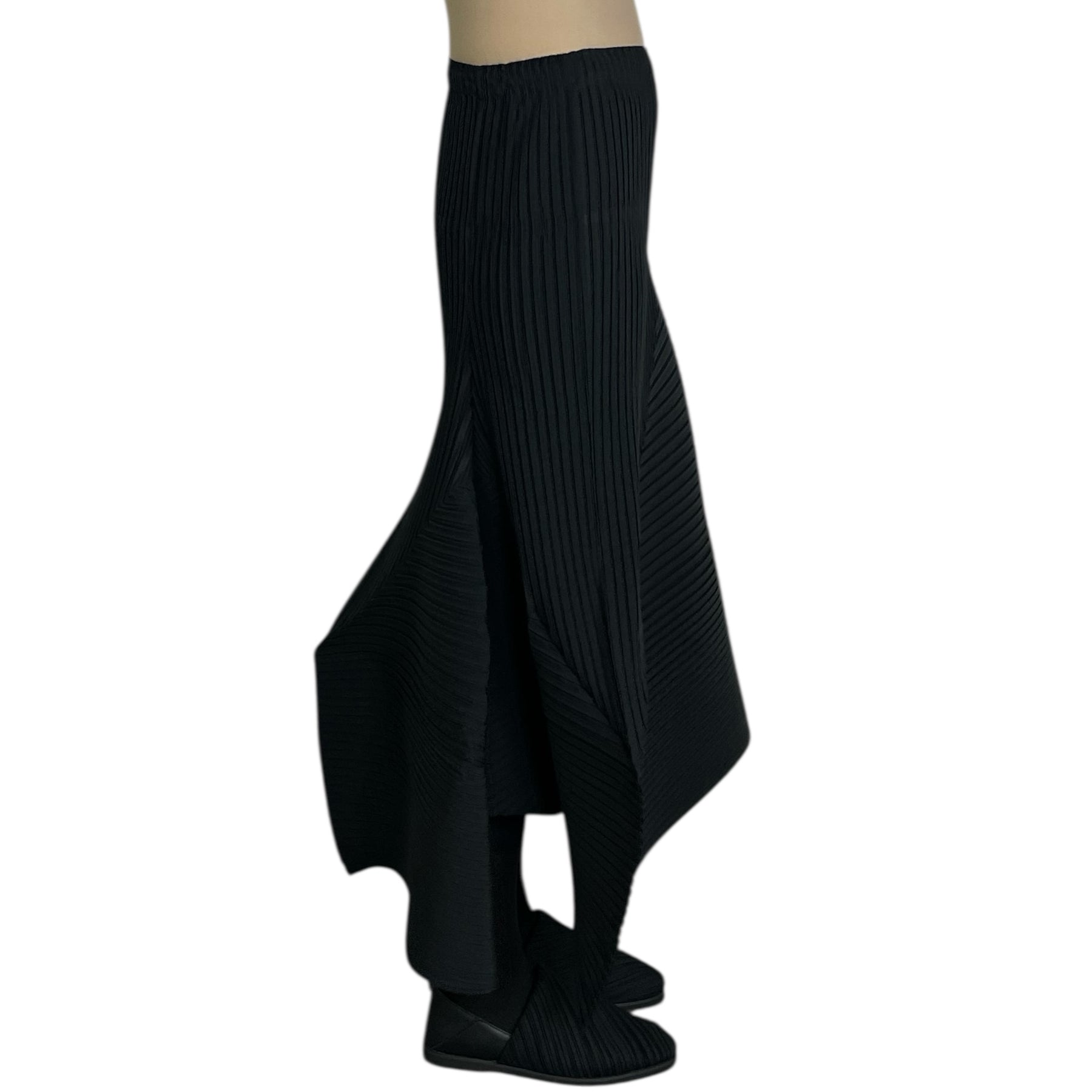 Pull-on skirt with elasticized waistband and bold asymmetric silhouette.