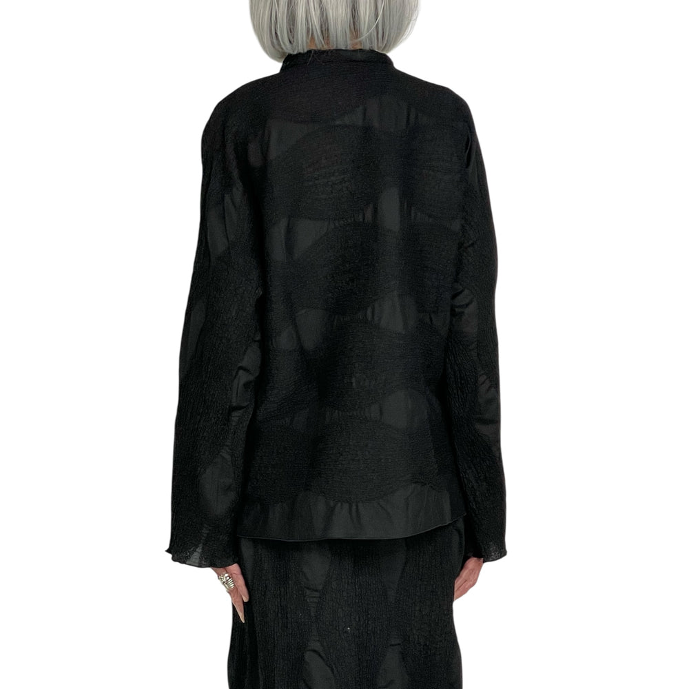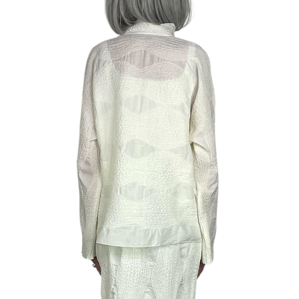 Nuno, is the Japanese word for functional fabric. It is also the name of the renowned Japanese textile firm founded in 1984 by the master textile artist Junichi Arai, who created computer designed woven fabrics for Issey Miyake and Rei Kawakubo in the early 1970’s. In 1987 Reiko Sudo took over as design director and has kept Nuno textiles at the forefront of contemporary textile design. By merging the centuries old textile skills of small mills with factories having advanced modern day technology, Nuno has been able to continue creating contemporary and innovative textiles that are timeless, durable and functionally unique. Environmentally responsible, Nuno has been committed to reducing waste by up cycling all scraps and focusing on using kibiso, the outer layer of the silk cocoon.