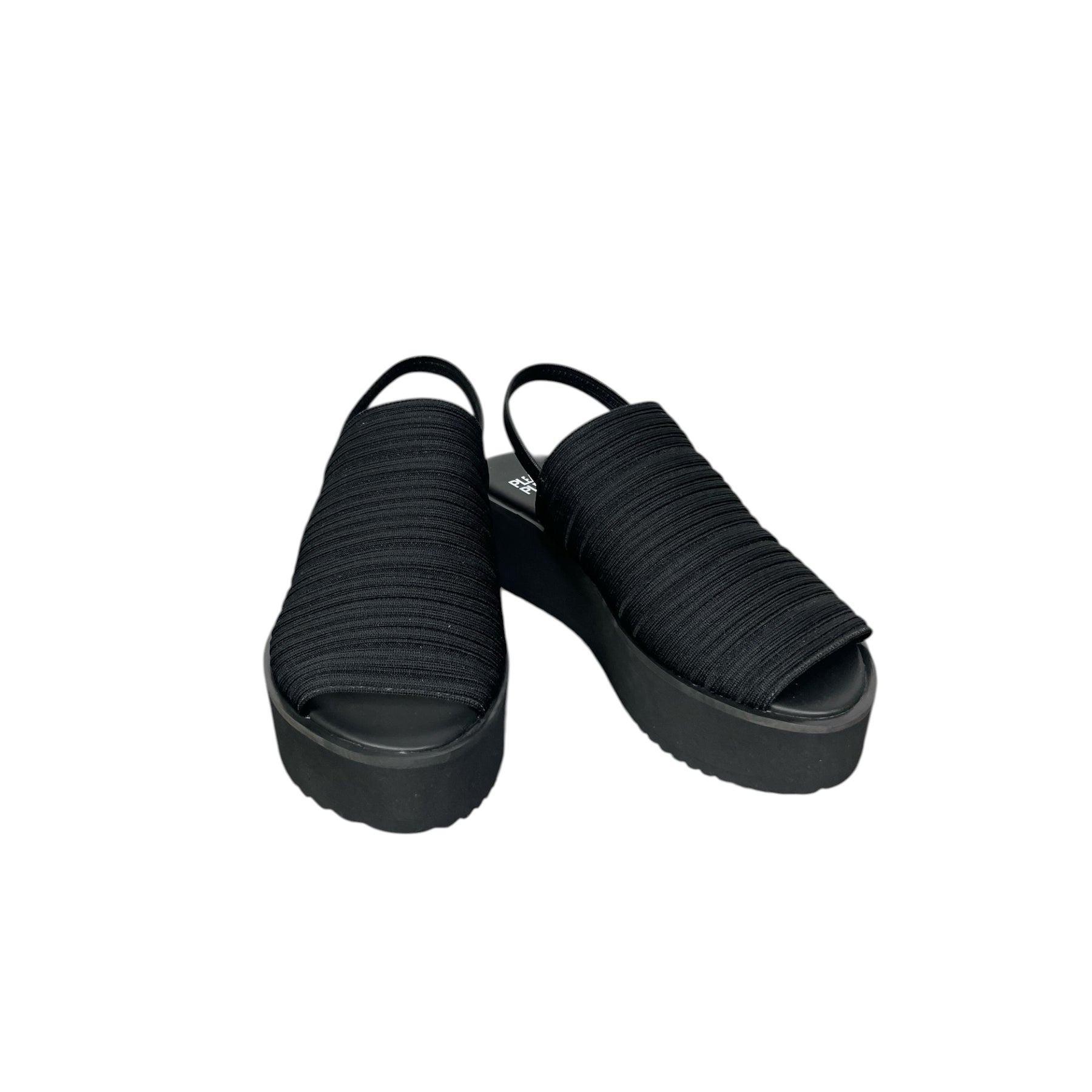 Pleated platform sandals with an elasticized heel strap.