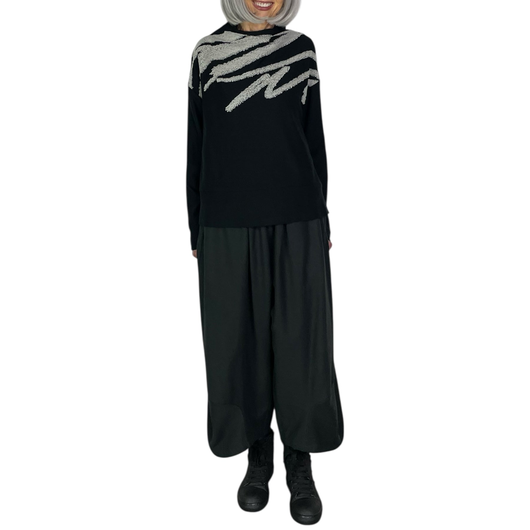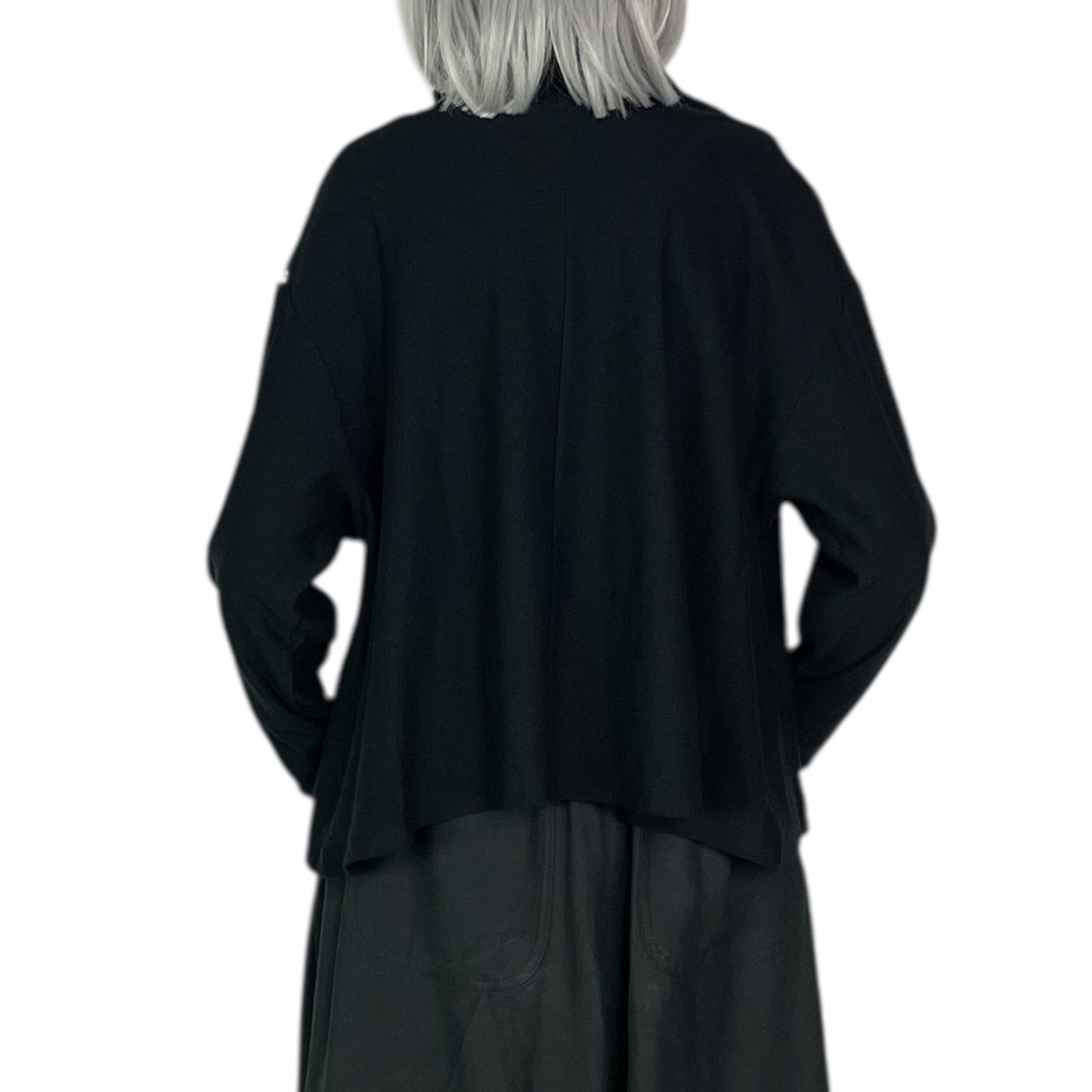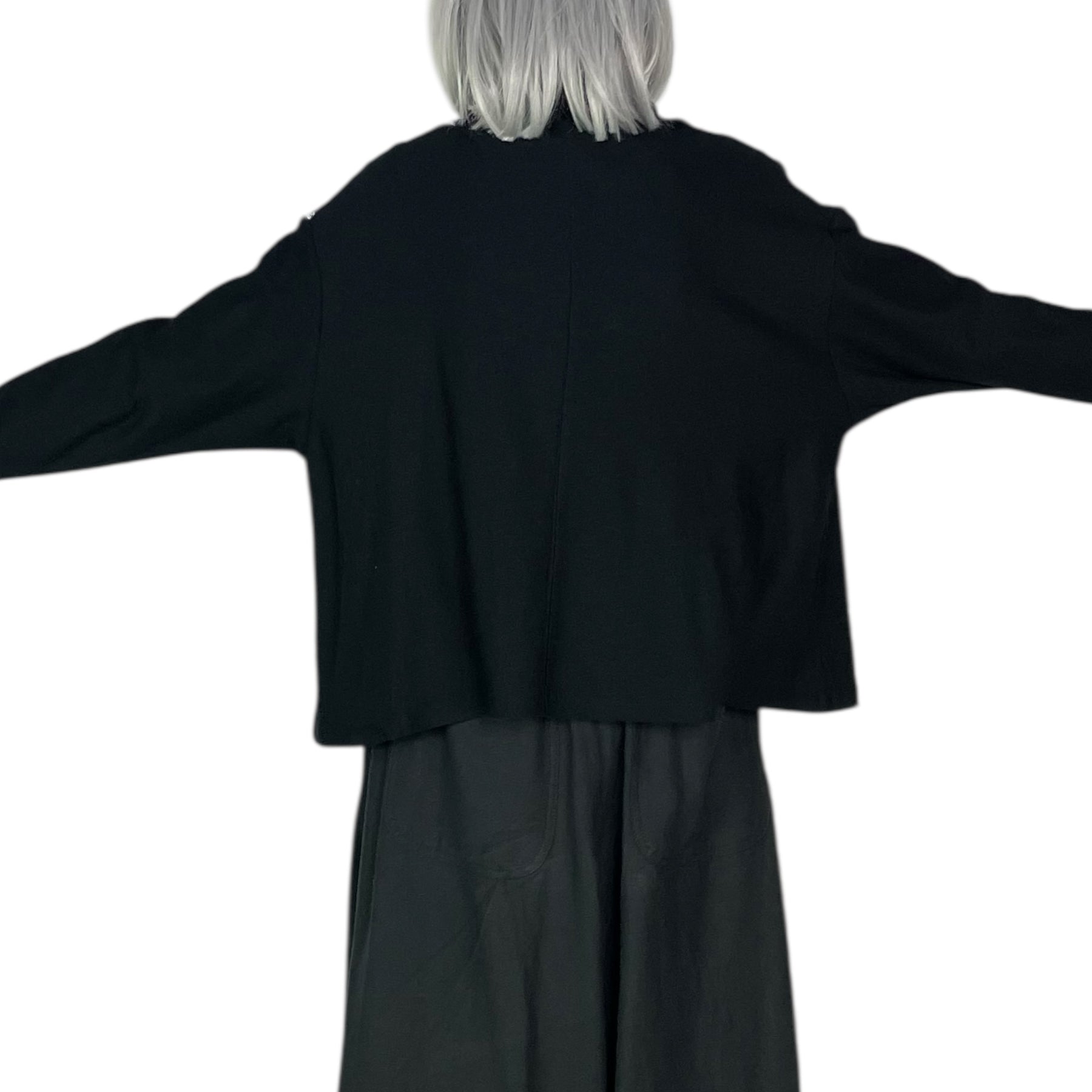 Long sleeve funnel neck top with drop shoulders and a boxy silhouette.