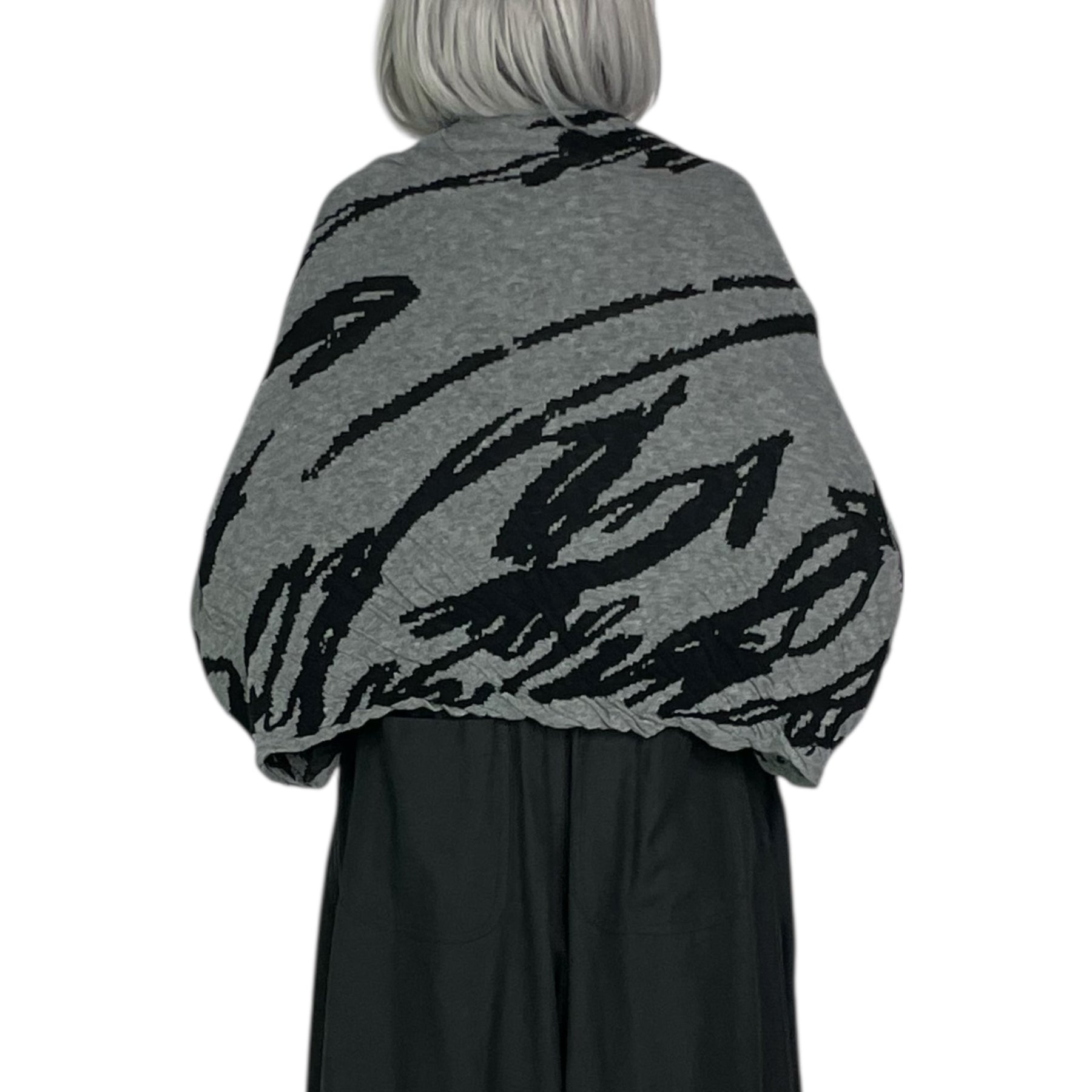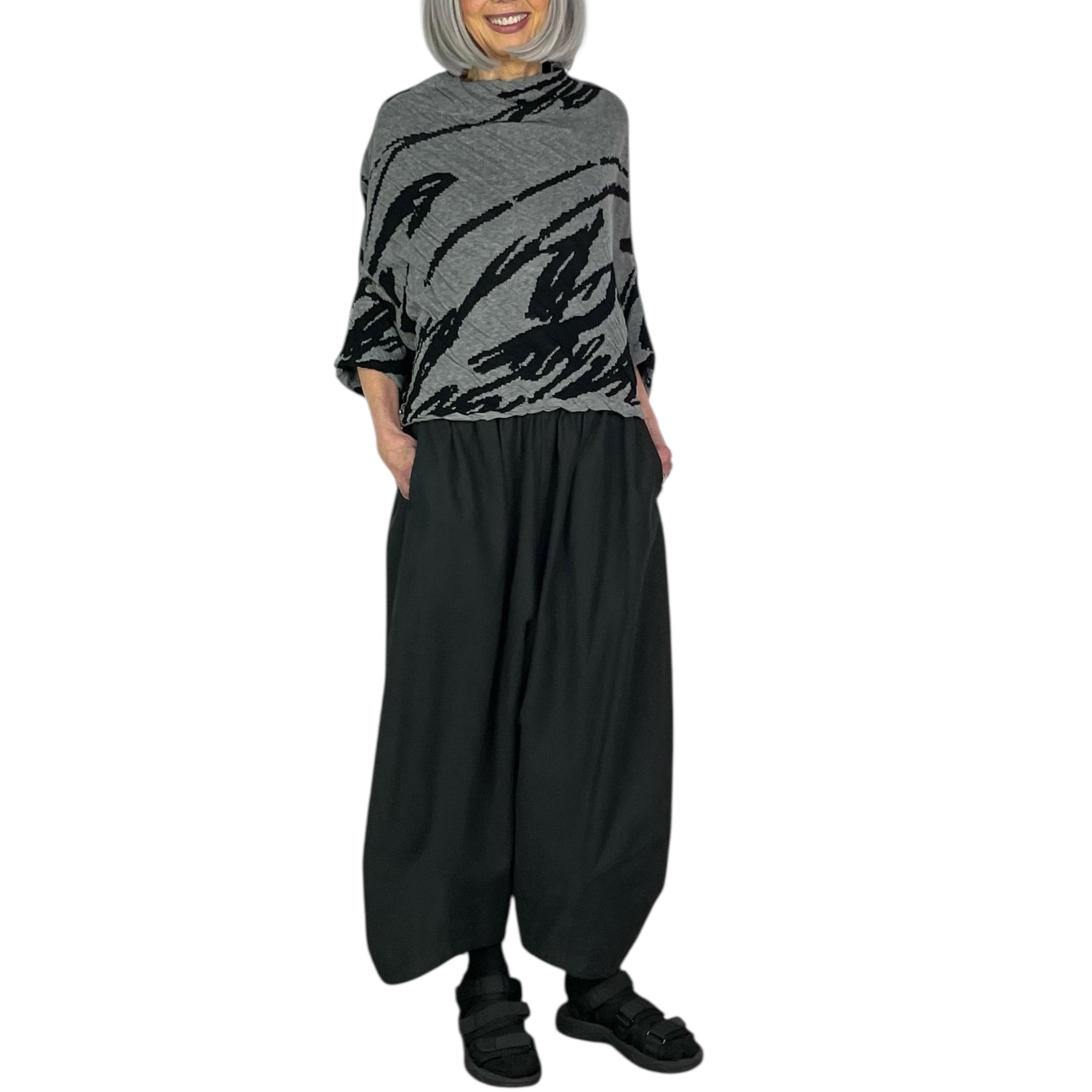 Short sleeve knit pattern sweater with drop shoulders and a wide, cropped silhouette.