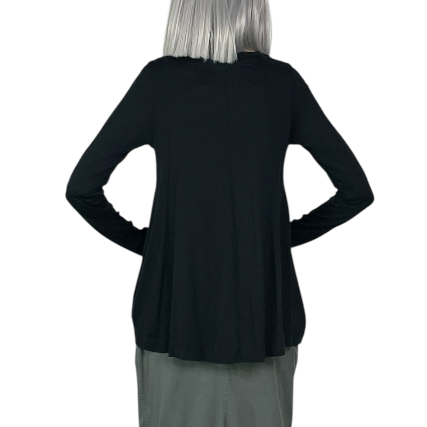 Long sleeve round neck t-shirt with an A-line silhouette.