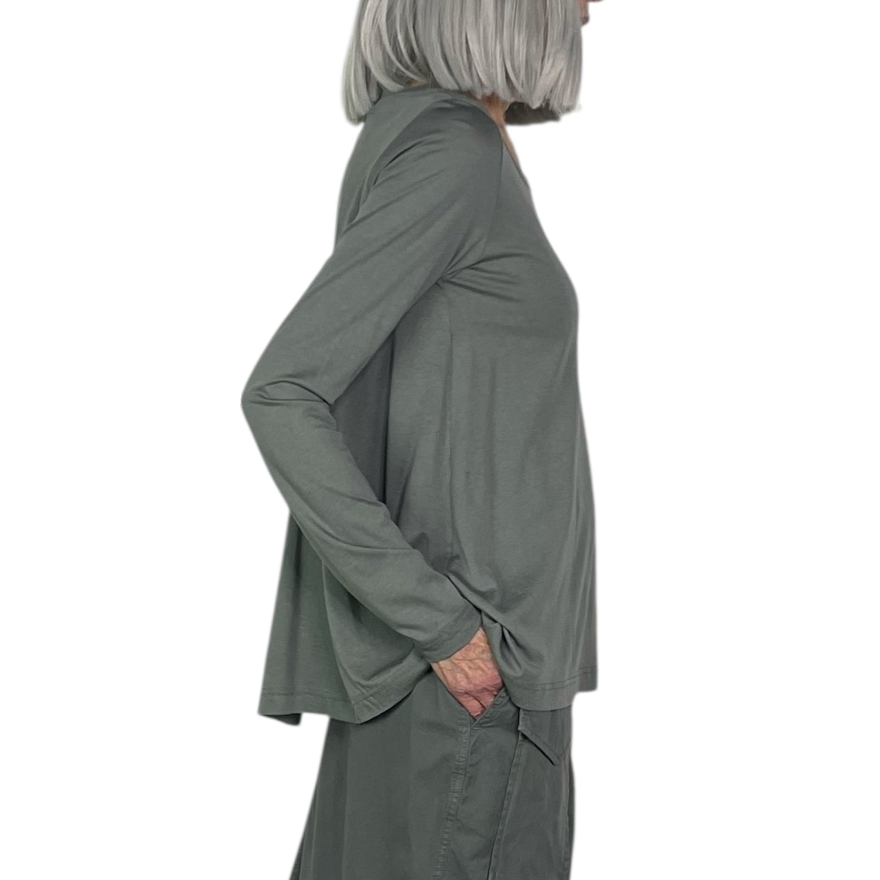Long sleeve round neck t-shirt with an A-line silhouette.