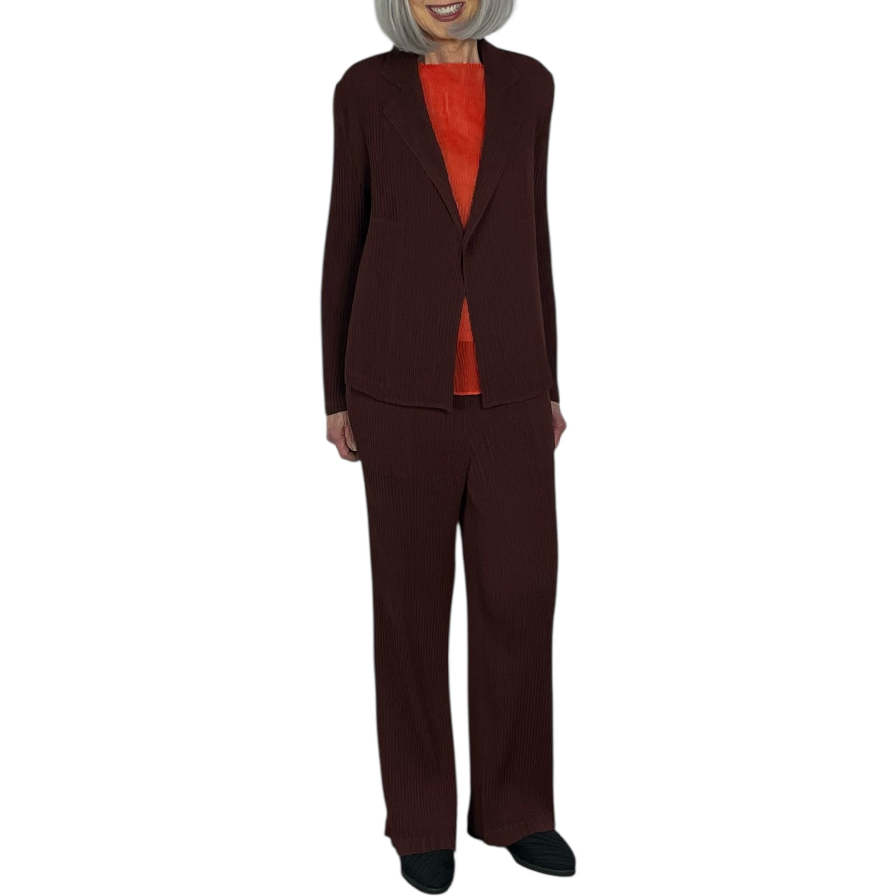 Styled with Issey Miyake Chiffon Twist 2 Crewneck Top and Hatching Pleats Straight Pant