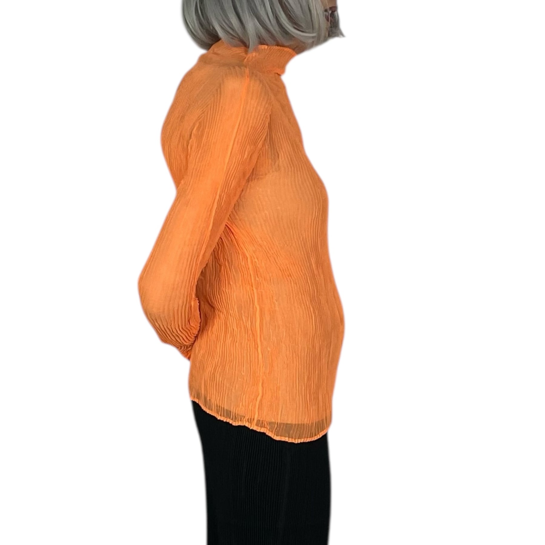 Twist pleated hi-neck top with long sleeves and a slim fit.