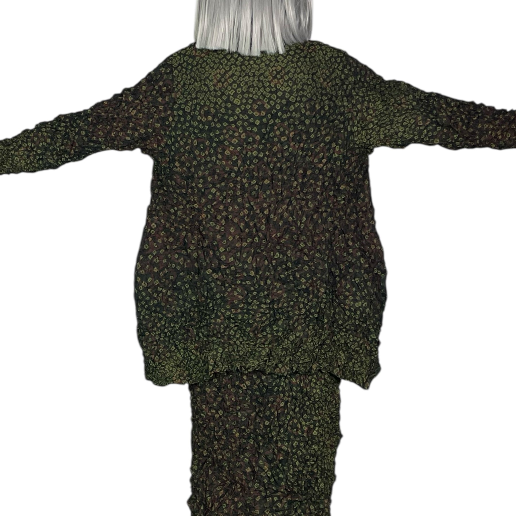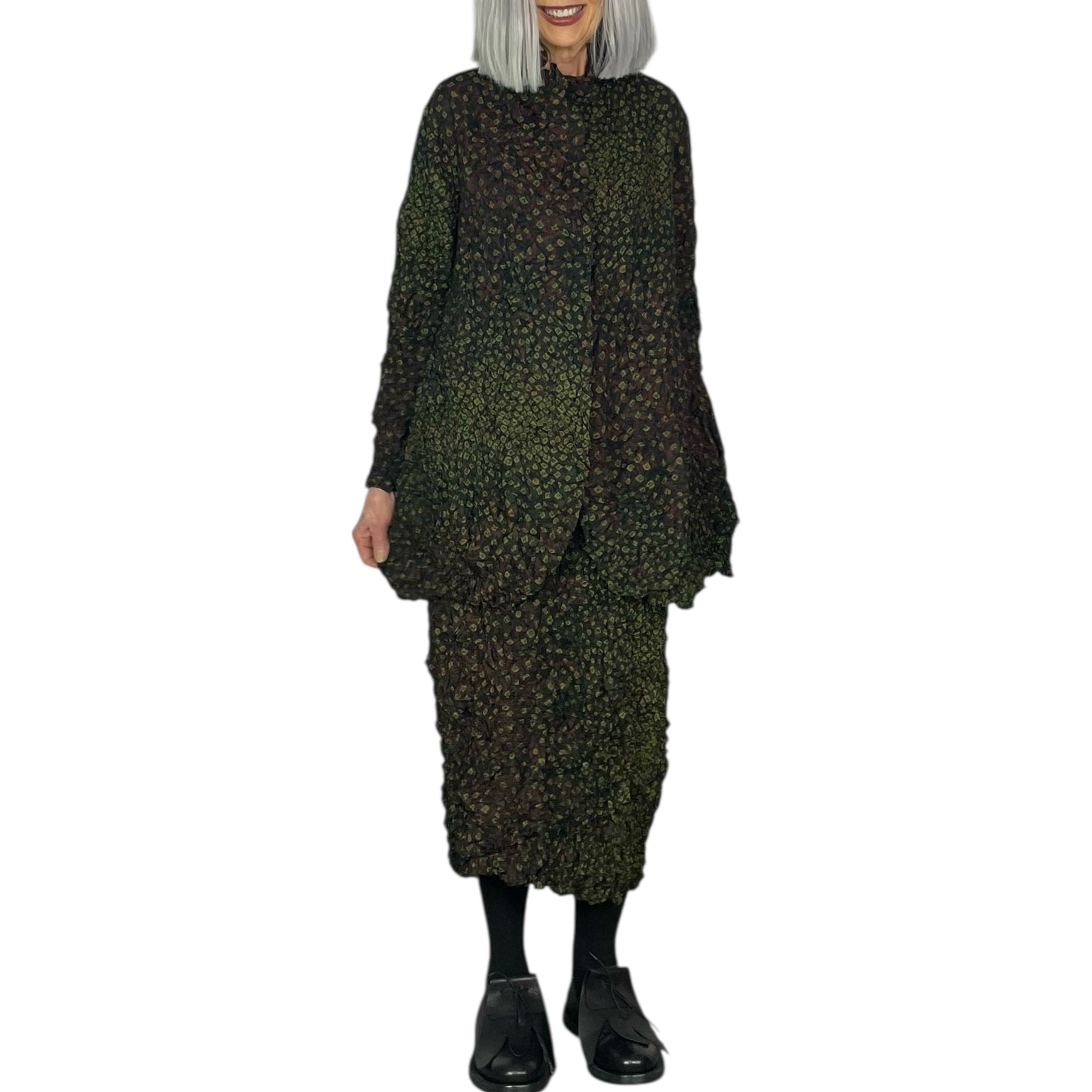 Styled with Shu Moriyama Shibori Crush Pleat Slim Skirt